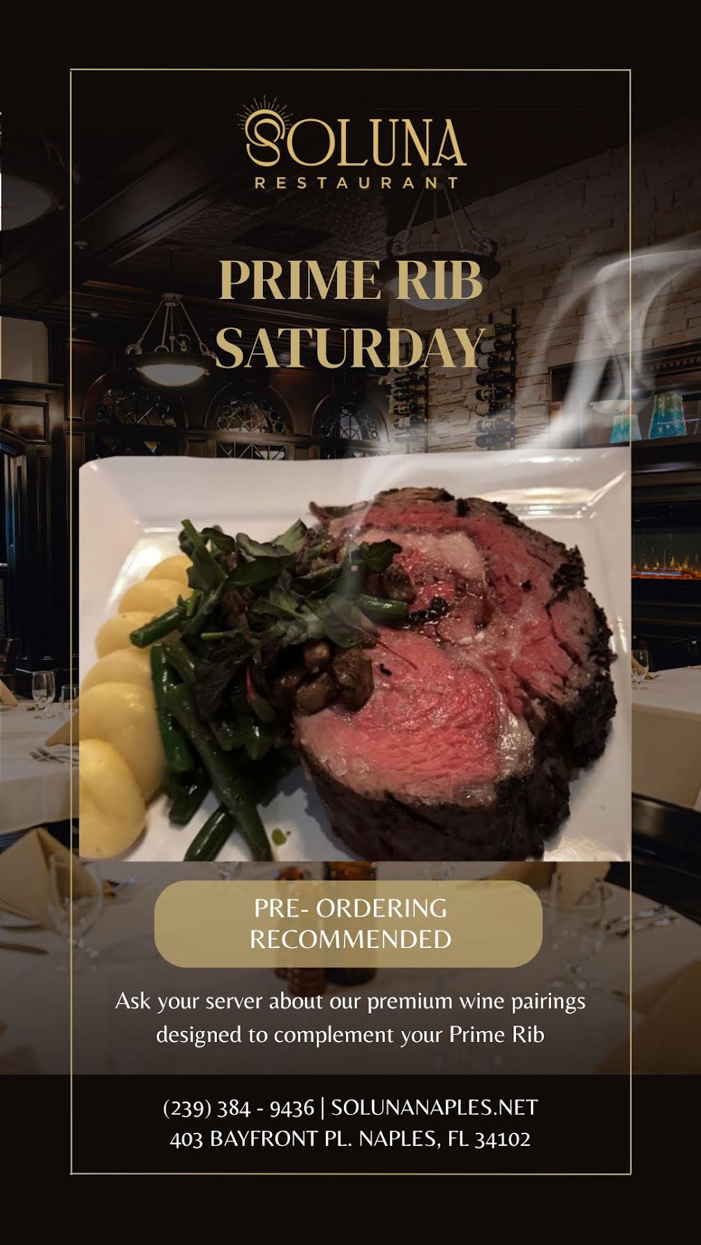Saturday – 3:00 PM – 10:00 PM – Prime Rib